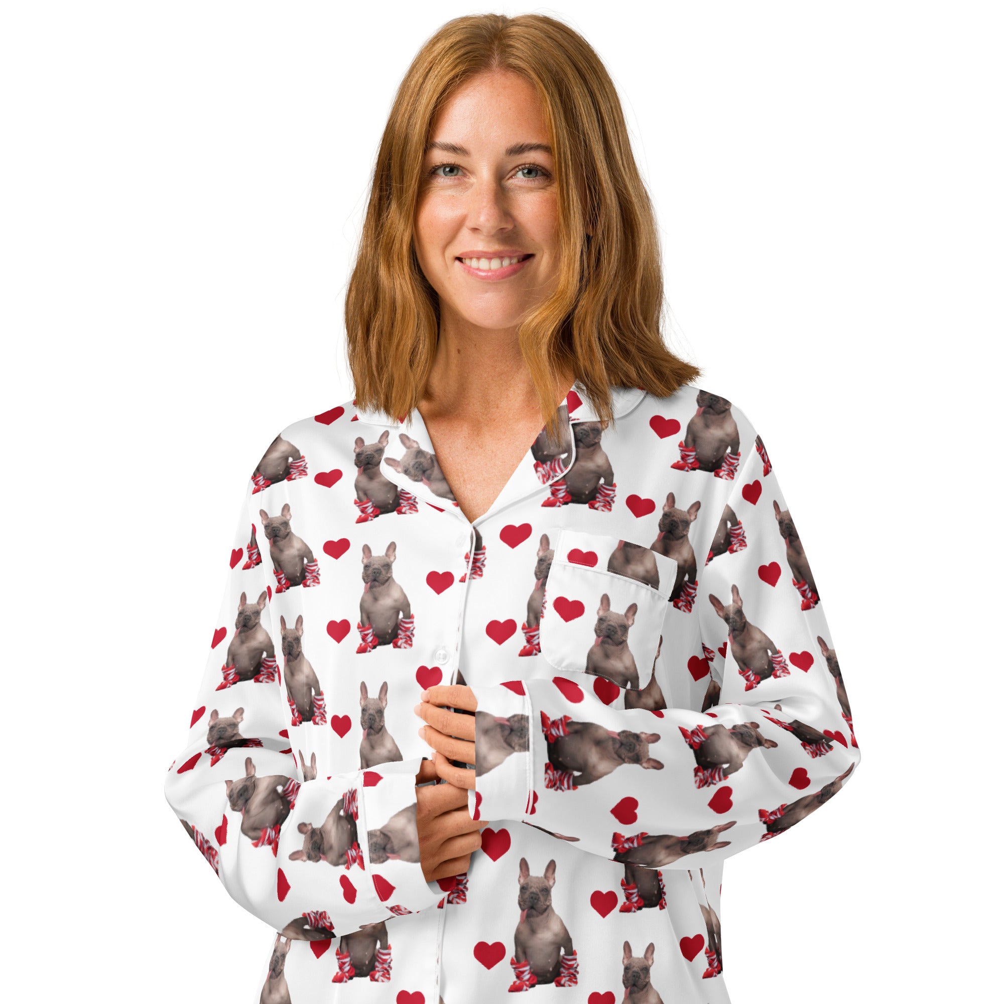 It's a very wonky holiday with Savvy the Hairless! Don't forget that all proceeds go toward our rescue partner, Luvable Dog Rescue. This silky pajama top is ideal for a cozy day when you want to feel both comfortable and elegant. It features a relaxed fit, chest pocket, and elegant piping detail.